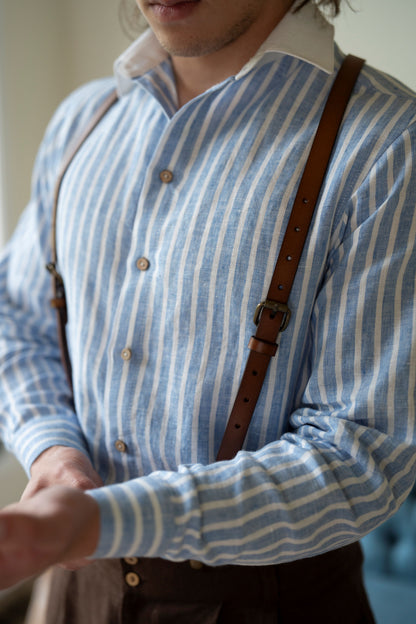 This linen collared shirt is a stylish and comfortable addition to any man's wardrobe. Its timeless design and eco-friendly features make it a smart choice for the conscious and fashionable man.